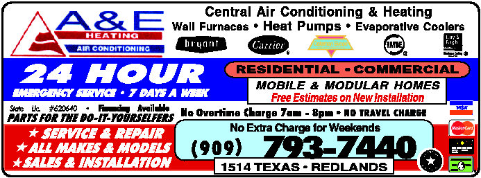 & AIR CONDITIONING   730 South H St   San Bernardino  888-8181