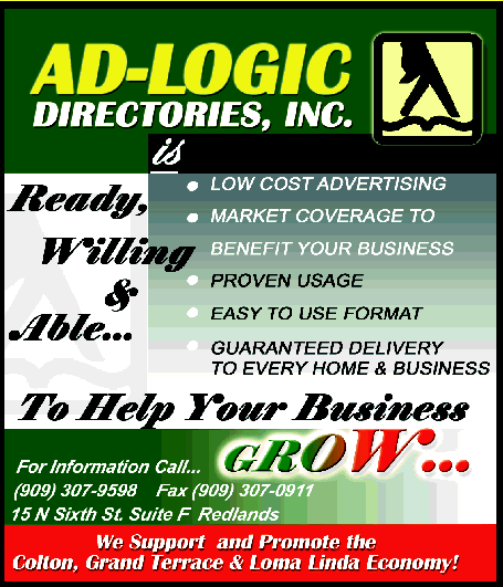 "The Logical Place To Advertise"   Serving: Colton-Grand Terrace-   Loma Linda & Portions Of   San Bernadino   15 N Sixth St Suite F   Redlands  307-9598