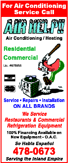 AIR CONDITIONING INC   620 Tennessee St   Redlands  888-8181